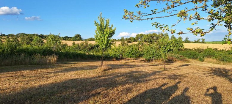 Den Abschluss der Exkursion bildete die Besichtigung der Streuobstwiese am Lauterberg. Hier pflanzte der Landschaftspflegeverband in den letzten zwei Jahren 80 neue Hochstamm-Obstbäume und beschnitt etwa 100 Altbäume.