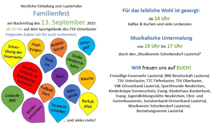 Familienfest am 13. September 2025 mit vielen Attraktionen