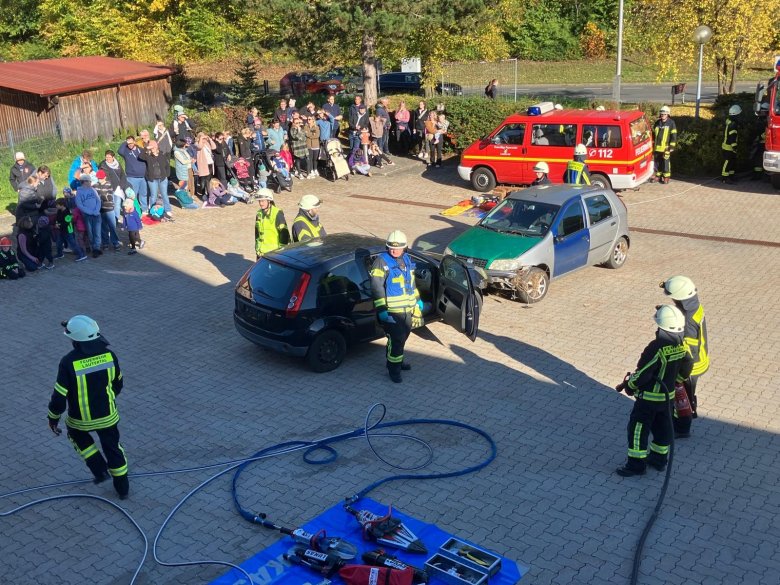 Am Kirchweihsamstag fand eine große Schauübung der Freiwilligen Feuerwehr auf dem Gelände des Feuerwehrhauses-Zentrum statt. Unter dem Motto „Bergen nach Unfällen“ zeigten über 25 Feuerwehrkameradinnen und -kameraden eindrucksvoll ihr Können und ihre Einsatzbereitschaft. Kommandant Matthias Grosch moderierte die Übung und erläuterte den zahlreichen Zuschauern die einzelnen Arbeitsschritte und Techniken. Unter den Gästen befanden sich auch Bürgermeister Karl Kolb und Landrat Sebastian Straubel, die von der Professionalität und dem Engagement der Einsatzkräfte beeindruckt waren.