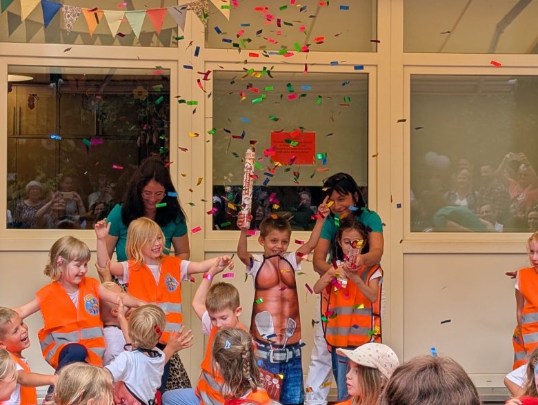 Für Spaß und Bewegung sorgte im Anschluss eine Rallye durch den neuen Garten, bei der kleine Entdecker an verschiedenen Stationen sich ausprobieren konnten und am Ende eine Medaille erhielten. Viele weitere Highlights rundeten das gelungene Fest ab – ein Tag, der den Kindern, Eltern, Erziehern und allen Mitwirkenden sicher lange in schöner Erinnerung bleiben wird.