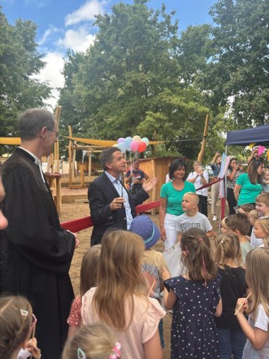 Offizielle Einweihung des Spielplatzes im Rosenauer Weg, die aufgrund der schlechten