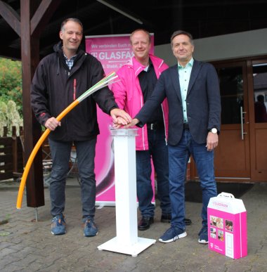 Breitbandpate Alexander Escher, Bürgermeister Karl Kolb und Andreas Rudloff von der Deutschen Telekom