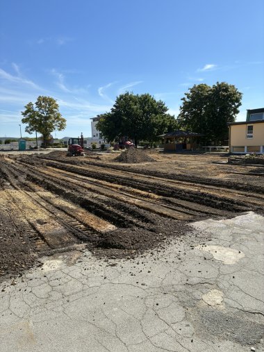 Auch 2025 hat die Gemeinde hohe Investitionen in die Mittelschule Am Lauterberg getätigt. Schwerpunkt ist dabei die Neugestaltung der Außenanlagen, insbesondere des Pausenhofs. In diesem Zuge werden neue Sitzmöglichkeiten mit Beschattungen und Bewegungselemente geschaffen, ein Soccerfeld, ein Atrium und eine Außenbühne errichtet sowie der bestehende Pavillon erneuert. Durch diese Maßnahmen soll der Pausenhof attraktiver werden und künftig vermehrt für außerschulische Veranstaltungen genutzt werden. Durch die Entsiegelung von Flächen wurde auch der ökologische Aspekt berücksichtigt.