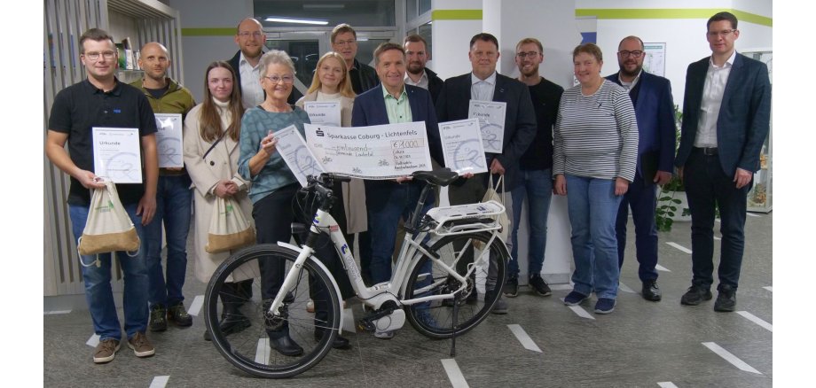 Rekordradler: Die besten der insgesamt 912 Teilnehmer bei der Stadtradeln-Aktion 2025 in Stadt und Landkreis Coburg sind im Landratsamt ausgezeichnet worden. Foto: Landratsamt Coburg / Berthold Köhler